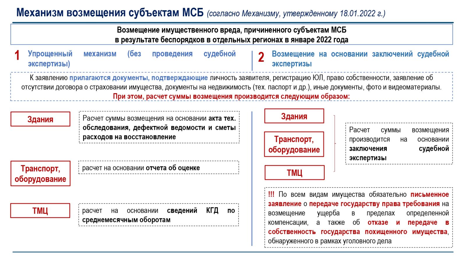 Для удобства предпринимателей НПП "Атамекен" подготовлен алгоритм действий по возмещению ущерба (infokazakhstan.kz), в котором описан пошаговый процесс возмещения ущерба (ниже приведены основные положения).