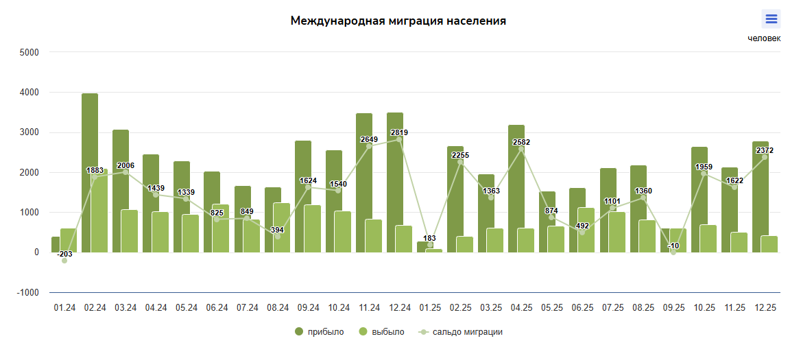 Параллельно усиливаются процессы внутренней миграции. Численность переезжающих в пределах страны, по сравнению с 2024 годом, увеличилась на 13,6%. Рост внутренней мобильности населения отражает продолжающееся перераспределение трудовых и демографических ресурсов между регионами.