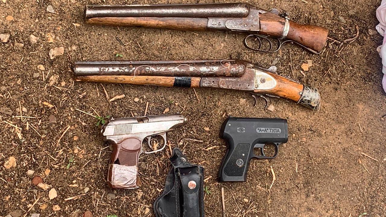 В результате обнаружены и изъяты 42 единицы (автомат "МР-40", снайперская винтовка "Драгунова", 22 ружья, 18 пистолетов) оружия, 8 гранат, 2 снаряда от РПГ, 4051 патрон различного калибра, а также бронежилеты, магазины от автоматов, радиостанции и ножи.