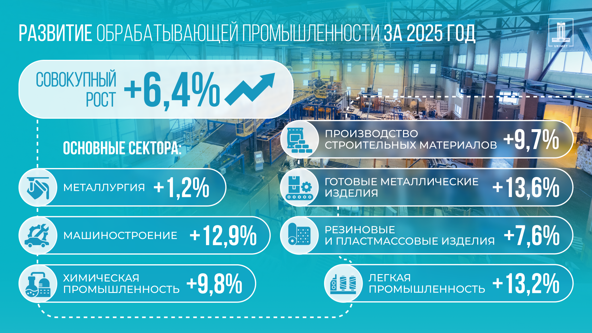Обрабатывающая промышленность Казахстана в 2025 году стала одним из ключевых факторов экономического роста и инвестиционной активности страны. Реализация поручений президента по развитию индустрии, диверсификации экономики и привлечению инвестиций позволила обеспечить устойчивую динамику практически во всех базовых секторах. По итогам января–декабря 2025 года, совокупный рост обрабатывающей промышленности составил 6,4%, чему способствовали расширение действующих производственных мощностей и запуск крупных инвестиционных проектов в регионах, передает inbusiness.kz со ссылкой на пресс-службу правительства РК.