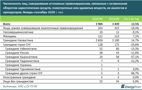 За январь-сентябрь 2020 года в стране зарегистрировали 5,8 тыс. уголовных правонарушений, связанных с незаконным оборотом наркотических средств — на 4,6% больше, чем годом ранее.