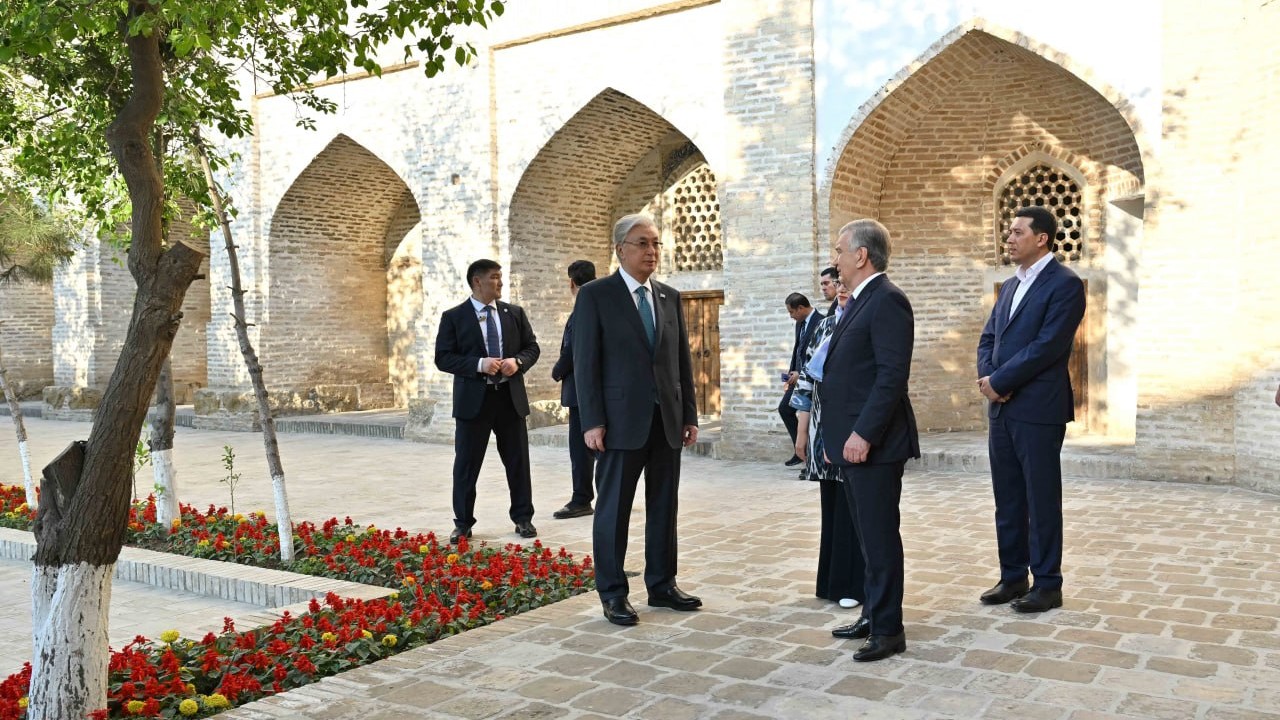 Лидеры Казахстана и Узбекистана также побывали в историческом комплексе "Пои-Калян", состоящем из трех сооружений XII-XVI веков – минарета Калян, мечети Калян и медресе Мири Араб.