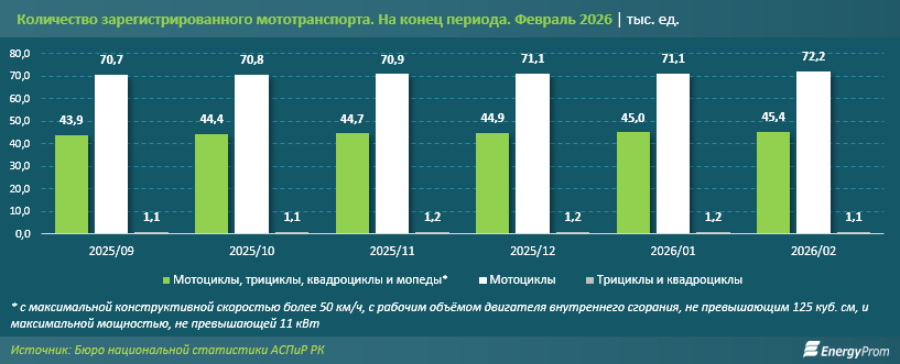 В 2025 году в Казахстане зафиксирован кратный рост первичной регистрации мототранспорта - показатель увеличился почти в десять раз, главным образом за счёт лёгкой техники, передает inbusiness.kz со ссылкой на energyprom.kz.