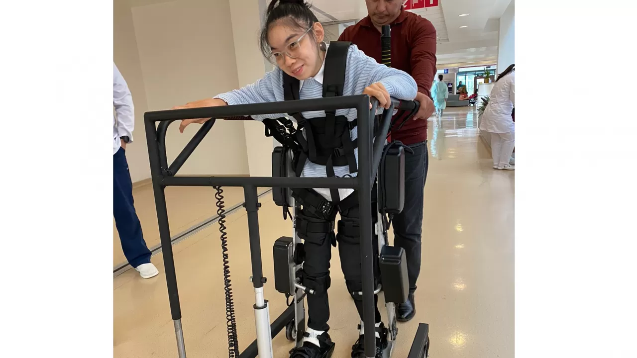 На протяжении пяти дней на базе Национального центра детской реабилитации (НЦДР) Асылжан совместно с врачами НЦДР и специалистами отечественной компании-производителя "Mbionics" проходила апробацию (тестирование, обучение) экзоскелета. Врачи наблюдали и оценивали аппарат на соответствие параметрам, функциональность и удобность для пациента. Ведь только после одобрения междисциплинарной группы при НЦДР, девочке разрешили получить экзоскелет и забрать его домой.