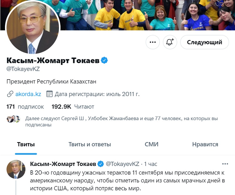 "В 20-ю годовщину ужасных терактов 11 сентября мы присоединяемся к американскому народу в один из самых мрачных дней в истории США, потрясших весь мир. Воспоминания об этом жестоком акте, совершенном против всего человечества, до сих пор живут в сердцах и умах миллионов людей во всем мире", – написал Токаев в субботу на своей странице в Twitter, передает inbusiness.kz.