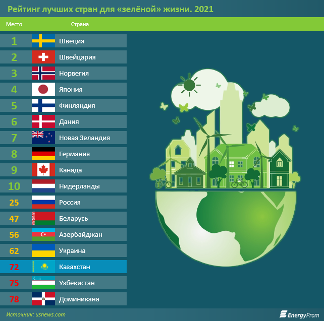 В свою очередь, в рейтинге экологической эффективности, основанном на количественной и числовой оценке экологических показателей государственной политики, Казахстан оказался на 93-м месте из 180 с индексом 40,9 из 100. Несмотря на то, что наша республика попала в середину рейтинга, её обошли, например, такие страны, как Намибия, Габон, Зимбабве, Эсватини и Афганистан.