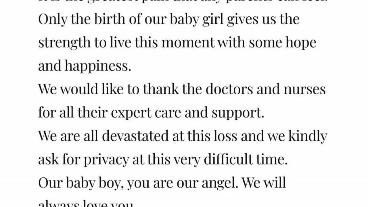 В октябре прошлого года пара заявила, что ждёт близнецов. Девочка выжила. Роналду поблагодарил врачей и медсестер за их помощь и попросил уважать его право на частную жизнь в этот трудный момент.