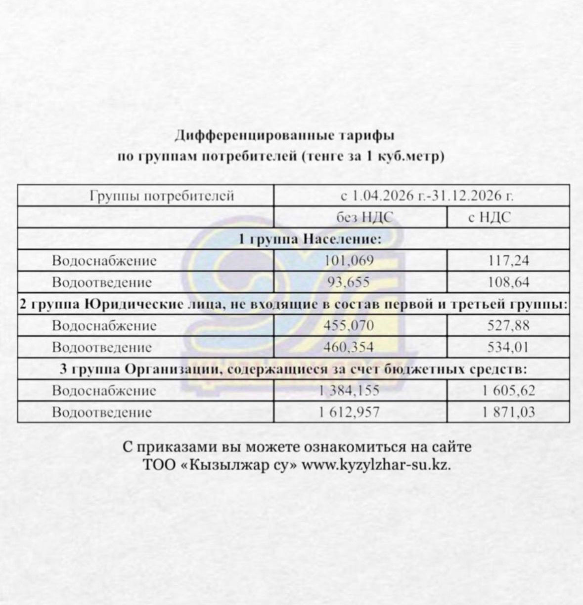 "Обновленные расчеты были утверждены заранее в рамках реализации программы тарифной политики. Потребителям важно обратить внимание на свою категорию при осуществлении платежей, чтобы избежать некорректных начислений", - отметили в ТОО “Кызылжар су”.