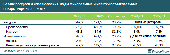 По итогам I квартала года казахстанские компании практически полностью обеспечили спрос на безалкогольные напитки: 92% всех внутренних и внешних продаж перекрыты местным производством.
