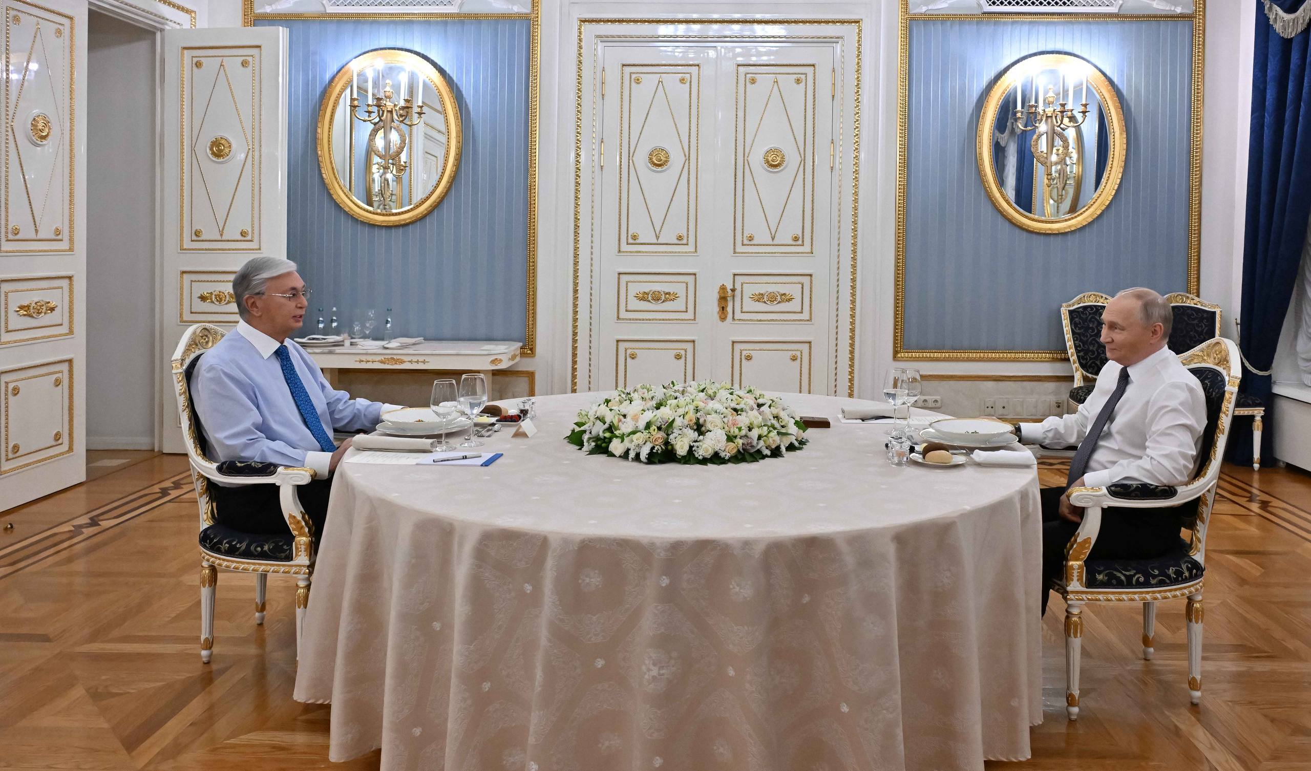 "Уважаемый Касым-Жомарт Кемелевич! Прежде всего, хочу Вас поблагодарить за то, что Вы нашли время и приехали, как мы договаривались, с государственным визитом. Я искренне рад этому. Конечно, мы с Вами находимся в постоянном контакте, но такие протокольные вещи тоже имеют значение в межгосударственных отношениях. Сегодня у нас будет возможность в неформальной обстановке поговорить по всем вопросам, которые представляют особый интерес, а завтра – вместе с коллегами уже пройтись по всей повестке дня наших двусторонних отношений и посмотреть, безусловно, на перспективу. Хотя в целом, думаю, мы очень хорошо закончим текущий год и сверстаем планы на ближайшее будущее и на более отдаленную среднесрочную перспективу".