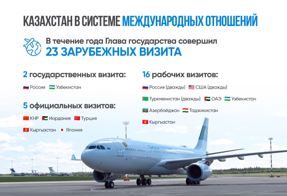 За год президент преодолел в ходе визитов и поездок внутри страны 168 960 километров, проведя в самолёте 252 часа. Эти показатели отражают интенсивность дипломатической деятельности и готовность Казахстана активно взаимодействовать с партнёрами по всему миру.