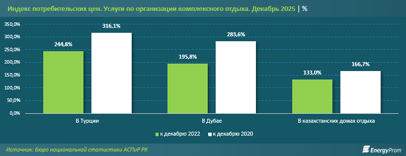 За три года рост цен на зарубежный отдых оказался ниже, всё же значительно превысив общую инфляцию: в Турции — в 2,4 раза, в Дубае — в 2 раза, в домах отдыха внутри страны — на треть.