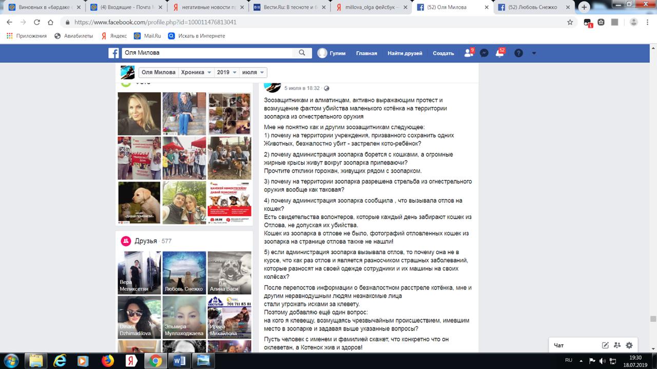 Руководство Алматинского зоопарка ответило на обвинения общественности. Как сообщили в пресс-службе организации, в течение 1,5 месяцев с момента прихода в Алматинский зоопарк нового директора – Вячеслава Банщикова – активисты-зоозащитники Ольга Милова, Любовь Снежко, Владимир Тепляков, Наталия Тартаковски обвиняют его в гибели животных и в том, что, якобы по его приказу, на территории зоопарка был расстрелян котенок.