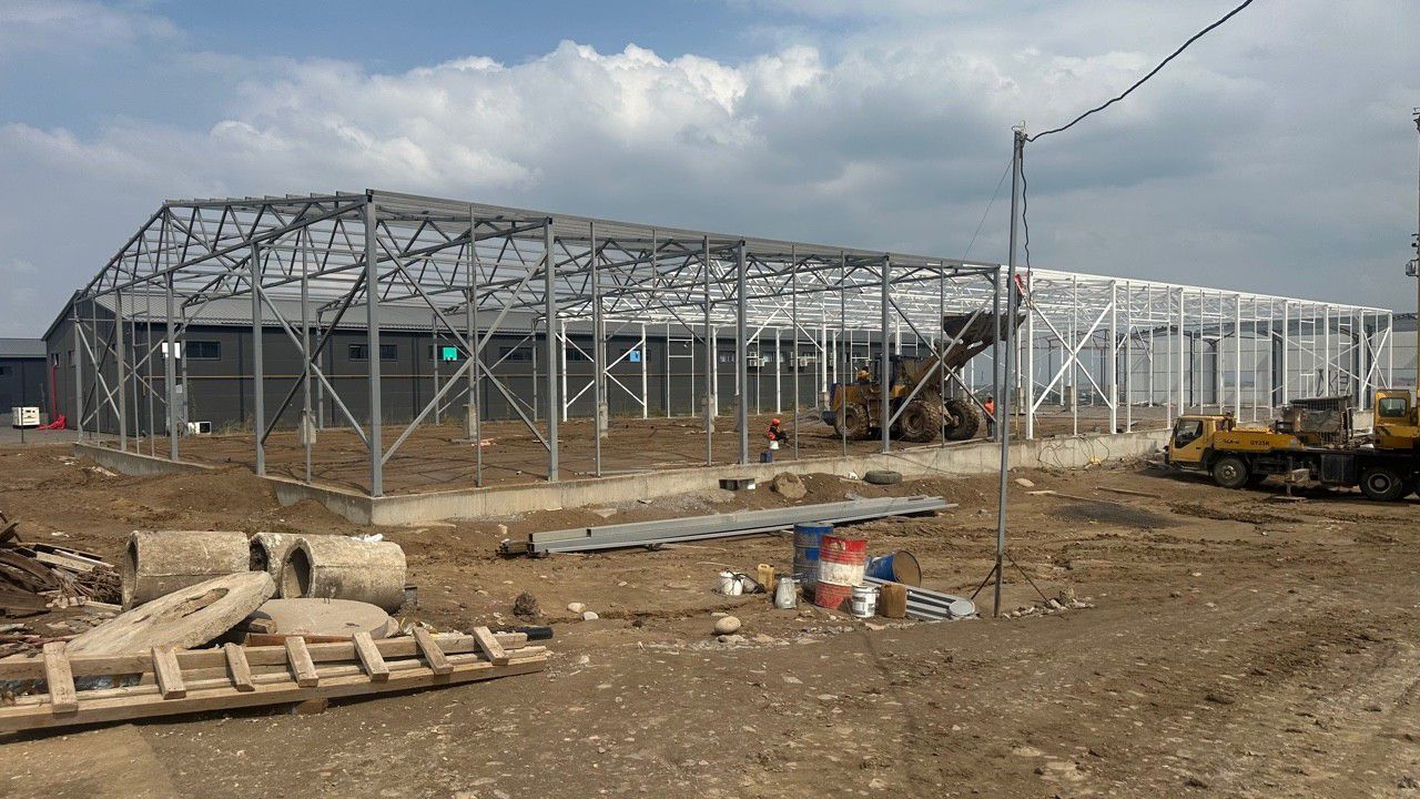Готовность объекта на текущий момент составляет 43%: завершено возведение каркасных конструкций производственных зданий и многоэтажной бетонной конструкции административного здания.