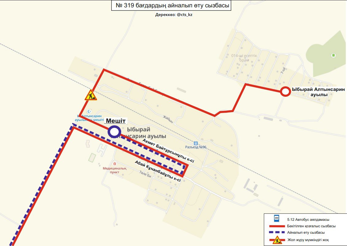"Временно изменилась схема движения пригородного маршрута №319", - сообщили в ТОО "City Transportation Systems".