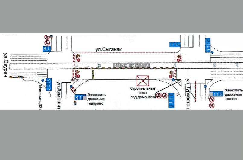 В связи этим будет полностью ограничено движение по южной стороне улицы Сыганак - на участке пересечении улиц Акмешит и Туркестан.