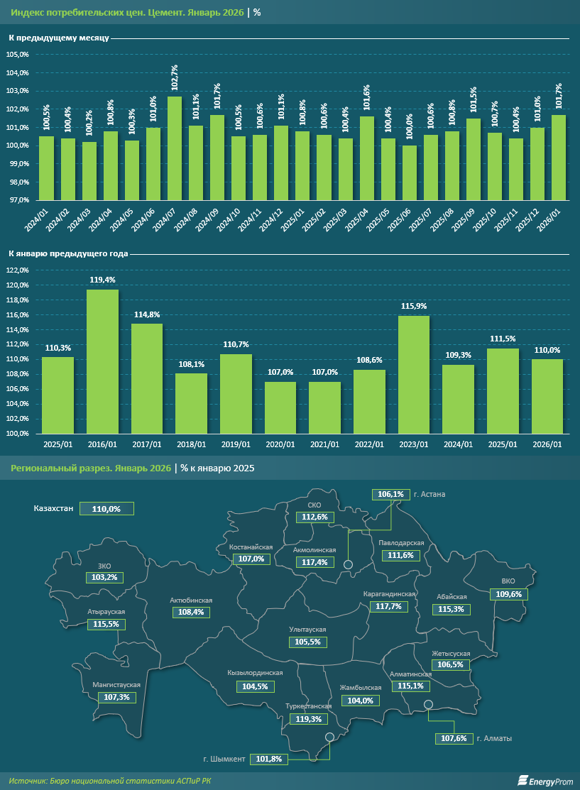 "В региональном разрезе по итогам января 2026-го наиболее ощутимое удорожание шампанского в годовом выражении наблюдалось в Туркестанской области: сразу на 19,3%. Следом идут Карагандинская (на 17,7%) и Акмолинская (на 17,4%) области. Ощутимый рост цен выше среднего по стране также был зафиксирован в Атырауской (на 15,5%), Абайской (на 15,3%) и Алматинской (на 15,1%) областях", - говорится в исследовании.