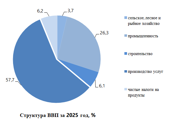 "В структуре ВВП доля производства товаров занимает 36,1%, услуг — 57,7%. Таким образом, сервисный сектор по-прежнему формирует основную часть экономики, однако значительный вклад в рост вносят и отрасли реального производства", - отметили в Бюро нацстатистики.