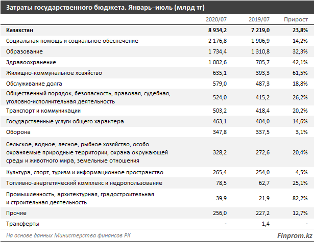 В июле было потрачено 1,5 трлн тг — на 11,4% больше, чем месяцем ранее, и на 23,7% больше, чем в июле прошлого года.