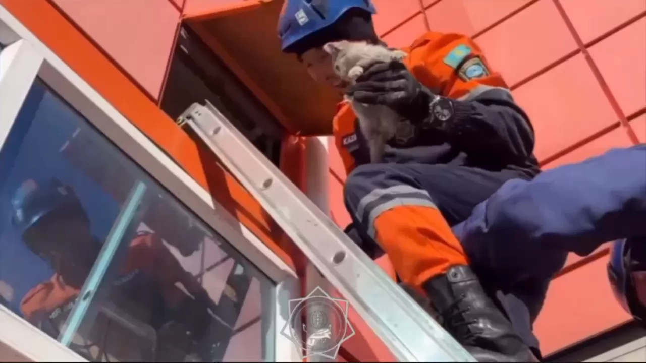 "Накануне в СКО спасателям поступило сообщение о том, что по улице Жабаева котенок застрял за металлической обшивки здания", - сообщил в четверг официальный Telegram-канал МЧС РК. - "Прибыв на место вызова, герои нашего времени с помощью лестницы благополучно спустили котенка".