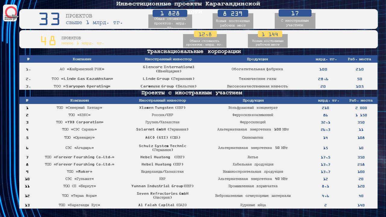 – Наша цель какая – ежегодное привлечение в Карагандинскую область частных инвестиций не менее миллиарда долларов. Это тот минимум, который будет поддерживать рост экономики. Без этого будет стагнация. Потому что все показатели промышленности в конечном итоге от этих инвестиций и рождаются.