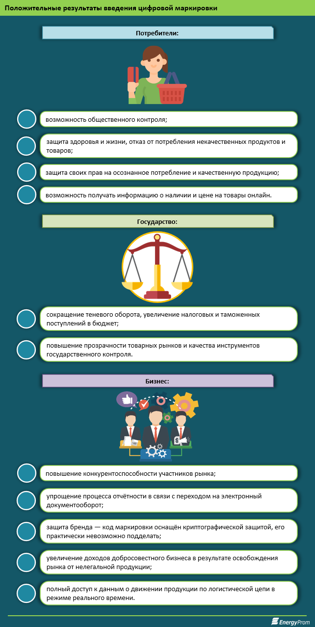 В этих условиях наиболее эффективным инструментом решения проблемы является маркировка товаров. Международная практика показывает, что маркировка товаров гарантирует качество и безопасность товара, оберегая потребителей от подделок и контрафакта. Кроме того, это один из важных инструментов, направленных на уменьшение теневого оборота товаров.