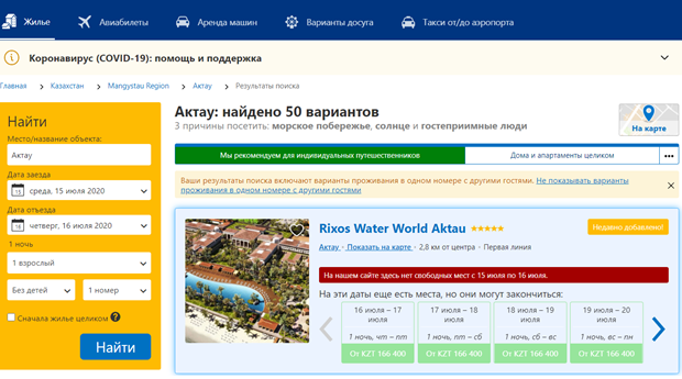 Inbusiness.kz изучил тарифы казахстанских и заграничных отелей с помощью системы интернет-бронирования Booking.com. Поскольку международные авиаперелеты еще не открылись, мы ориентировались на цены, которые выставлены на середину июля. Результаты обзора показали, что стоимость апартаментов в Казахстане не уступает зарубежным.