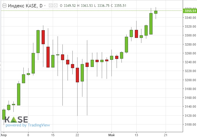 Вновь начал расти индекс Казахстанской фондовой биржи (KASE). За последнюю неделю он вырос почти на 1,3%, достигнув тем самым 3355 пунктов по итогам вчерашних торгов. Главными инициаторами роста стали две компании – Kcell и KEGOC, прибавившие за неделю в среднем по 2,5% стоимости. Нужно отметить, что акции казахстанского оператора электроэнергетики растут уже шестую торговую сессию подряд.