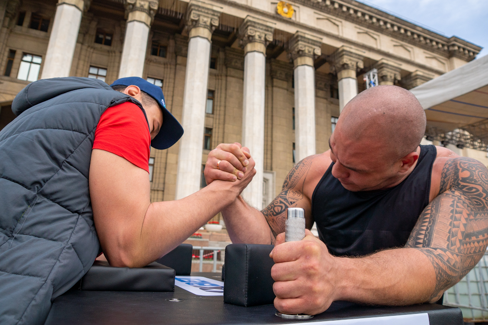 Тут же в борьбе на руках мерялись своей силой и выносливостью представители еще одной силовой дисциплины – армреслинга.