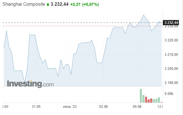 Именно в минувшую пятницу, 2 июня, индексы АТР резко выросли. По итогам торгов индекс Шанхайской фондовой биржи Shanghai Composite вырос на +0,79%, до 3230,07 пункта, гонконгский Hang Seng Index — на +4,07%, до 18 959 пунктов. Японский индекс Nikkei 225 — на +1,21%, до 31 524,22 пункта.