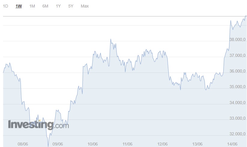 Сейчас биткоин торгуется по 39,5 тыс. долларов, передает inbusiness.kz. За последние 14 часов BTC вырос примерно на 9% – с 36 тыс. долларов. Сейчас главная криптовалюта находится на пике по результатам последней недели. Благодаря этому индекс доминирования биткоина поднялся с 41,6 до 45,76, а капитализация выросла до 736,3 млрд долларов.