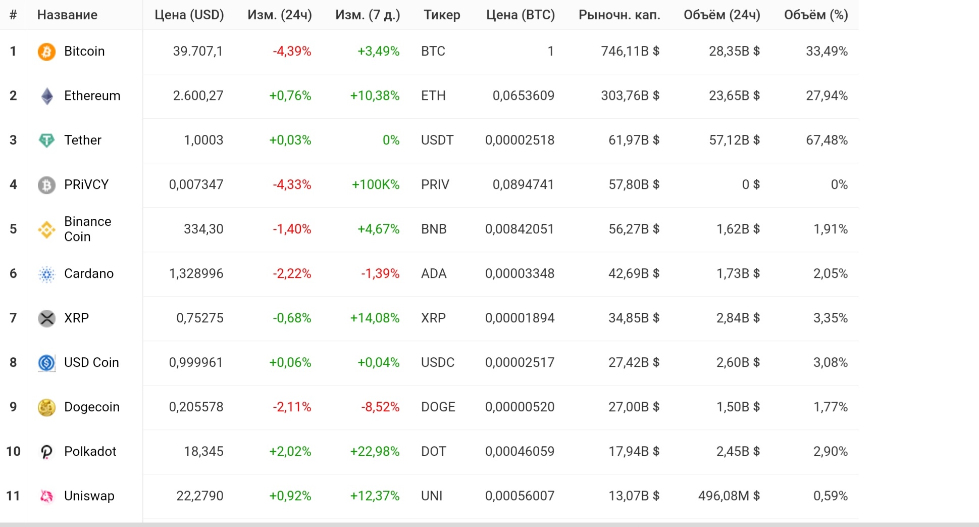 Практически сразу же компания опровергла эту информацию, и во вторник главная криптовалюта подешевела до 36,3 тыс. долларов. Тем не менее, в ночь на 28 июля биткоин вновь подорожал выше психологической отметки в 40 тыс. долларов, а вечером 30 июля буквально за 5 часов вырос на 8% - с 39 тыс. долларов до 42,1 тыс.