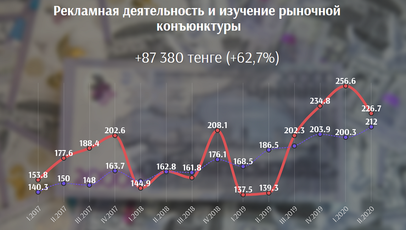 В начале текущего года рекламщики зарабатывали еще больше, чем сейчас: 256,6 тысячи тенге. Таким образом, карантин все-таки снизил их доходы, причем не слабо – на 30 тысяч тенге в месяц. Правда, за квартал, а не за год.