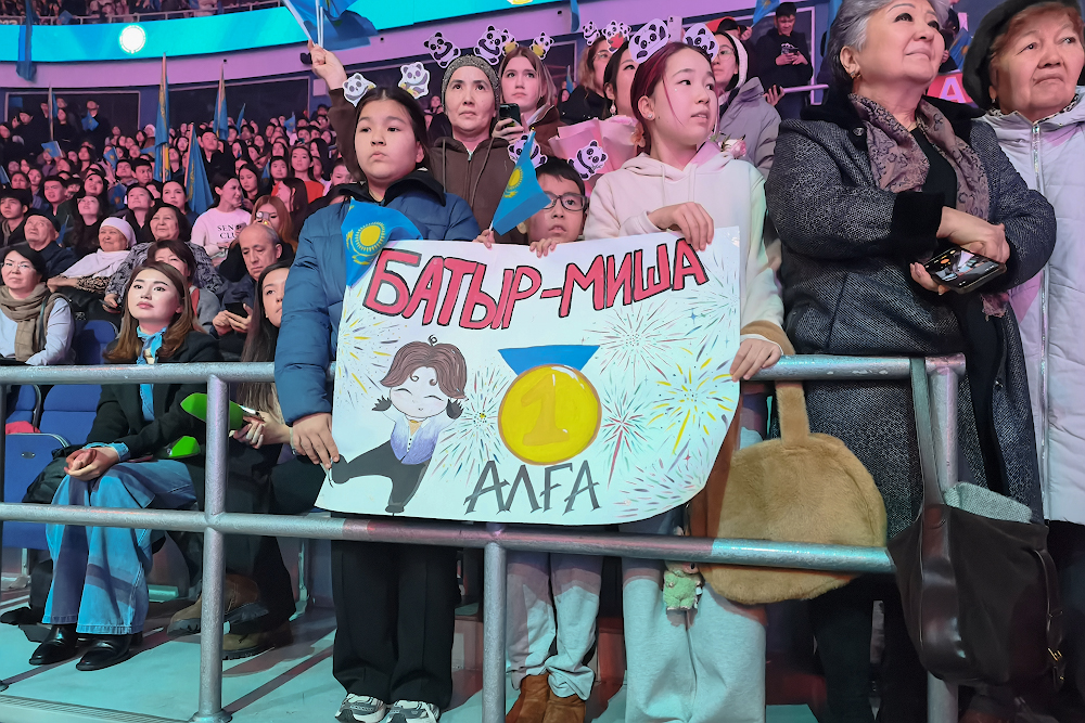"Ваша невероятная поддержка замотивировала меня во время исполнения произвольной программы. Это было невероятно. Всем – огромный рахмет!", - обратился к собравшимся олимпийский чемпион Михаил Шайдоров.
