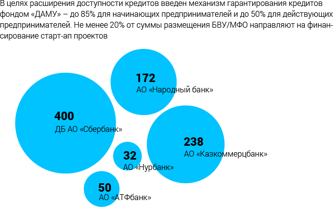 "Даму", являясь оператором в рамках второго направления программы, осуществляет фондирование банков второго уровня (БВУ) и микрофинансовых организаций (МФО) для дальнейшего финансирования проектов участников программы, а также выдает гарантии по микрокредитам.