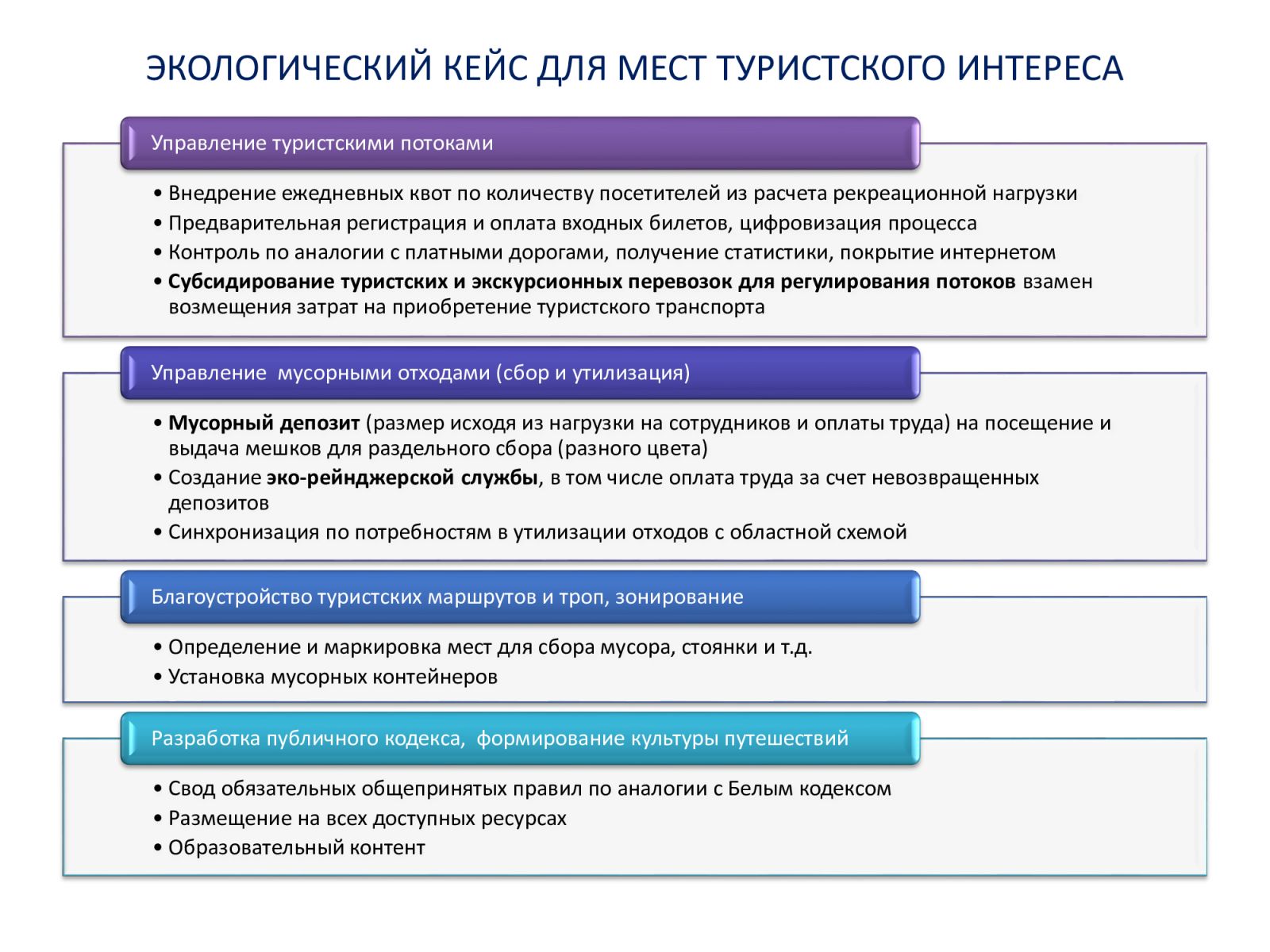 - Предложения по администрированию (мониторингу) соблюдения экологических и санитарных требований на территории Нацпарков;
