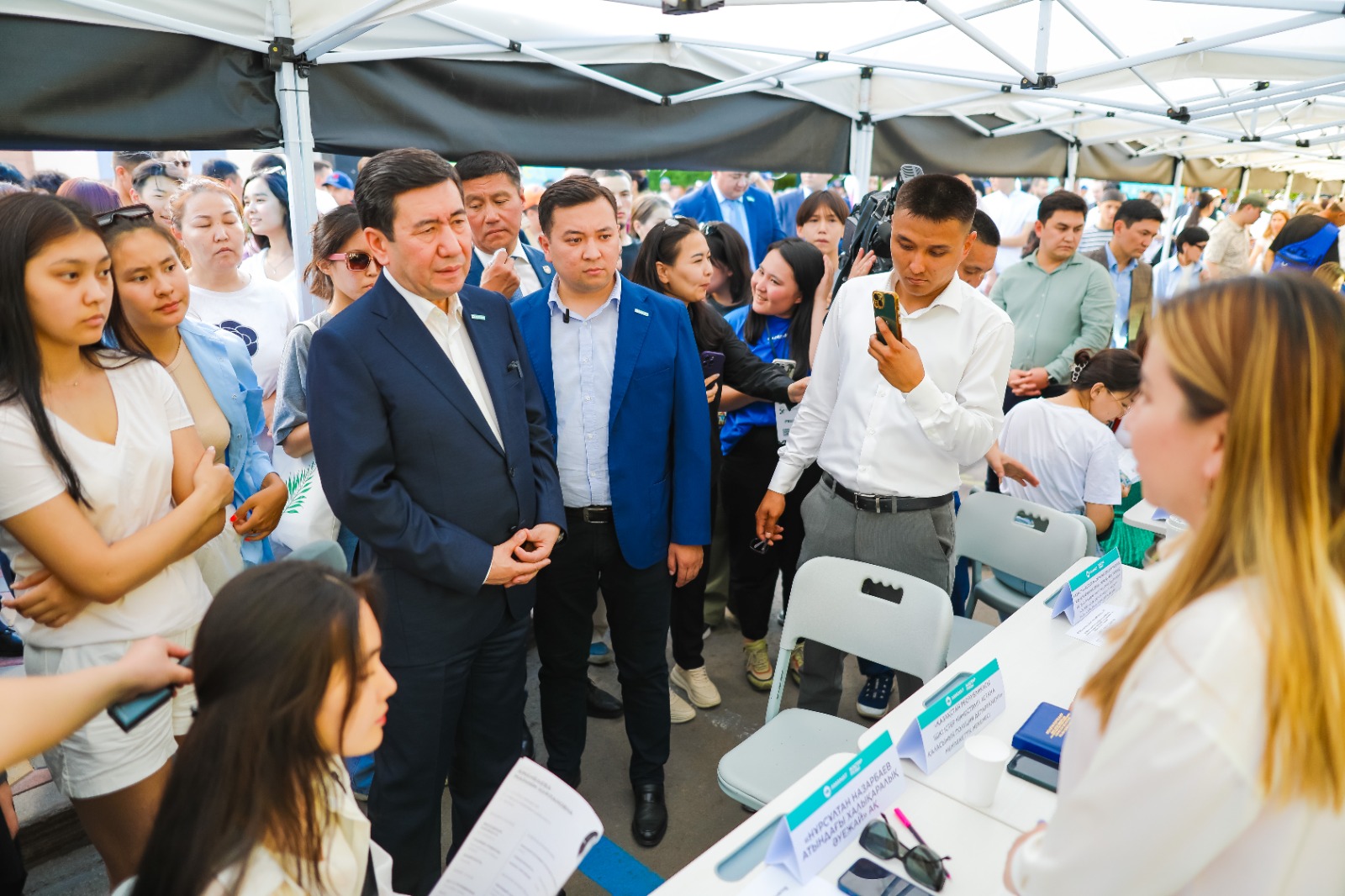 Ерлан Кошанов посетил столичную ярмарку вакансий, поговорил с молодежью и потенциальными работодателями.