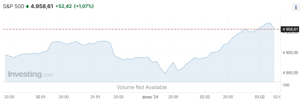 Индекс S&P 500 вырос на +1,07%. За неделю индикатор прибавил +1,38%, а за месяц вырос на +5,56%.
