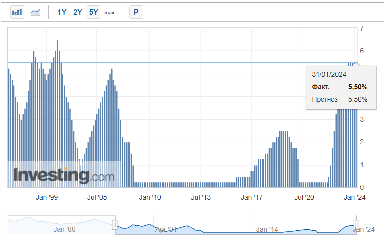 Напомним, что сейчас ставки в США находятся более чем на 20-летнем максимуме. При этом ставка на уровне 5,25-5,5% находится с июля прошлого года. Находящаяся на высоком уровне ставка продолжит ограничивать экономический рост в США, что, в свою очередь, негативно скажется и на спросе на нефть внутри страны.