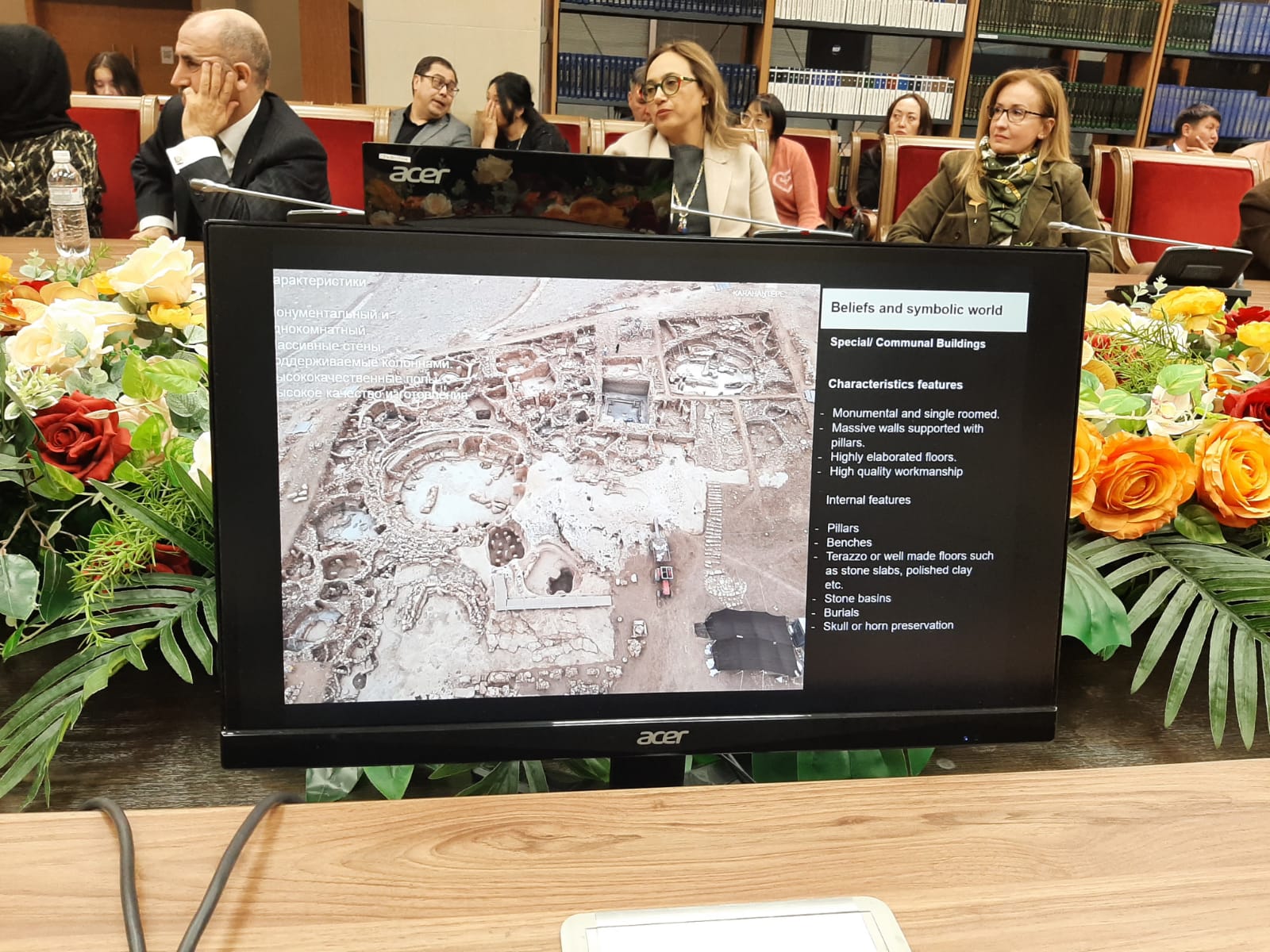В своем выступлении стамбульский профессор рассказал о значимости этих исторических памятников для всего человечества и артефактах, найденных в этих сооружениях древних людей, которые, скорее всего, только перешли на оседлый образ жизни, при этом продолжая заниматься организованной охотой и собирательством, предположительно, еще не обращаясь к земледелию и животноводству. Оба памятника, охватывающих несколькими слоями 9600-8000 годы до нашей эры, расположены в нескольких десятках километрах друг от друга и в целом изучены раскопками только примерно на десятую часть.