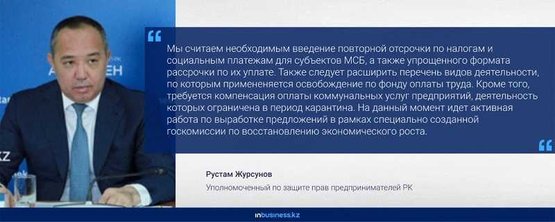 – Сейчас прорабатываются дополнительные меры поддержки. Мы считаем необходимым введение повторной отсрочки по налогам и социальным платежам для субъектов МСБ, а также упрощенного формата рассрочки по их уплате. Также следует расширить перечень видов деятельности, по которым примененяется освобождение по фонду оплаты труда. Кроме того, требуется компенсация оплаты коммунальных услуг предприятий, деятельность которых ограничена в период карантина, и другие. На данный момент идет активная работа по выработке предложений в рамках специально созданной госкомиссии по восстановлению экономического роста.
