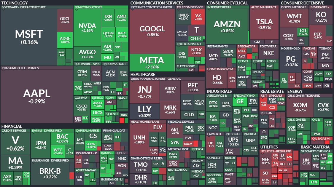 Индекс Dow Jones Industrial Average на закрытие рынка в понедельник вырос на +47,98 пункта (+0,14%) и составил 33 348,6 пункта. Индикатор вырос впервые за шесть сессий.