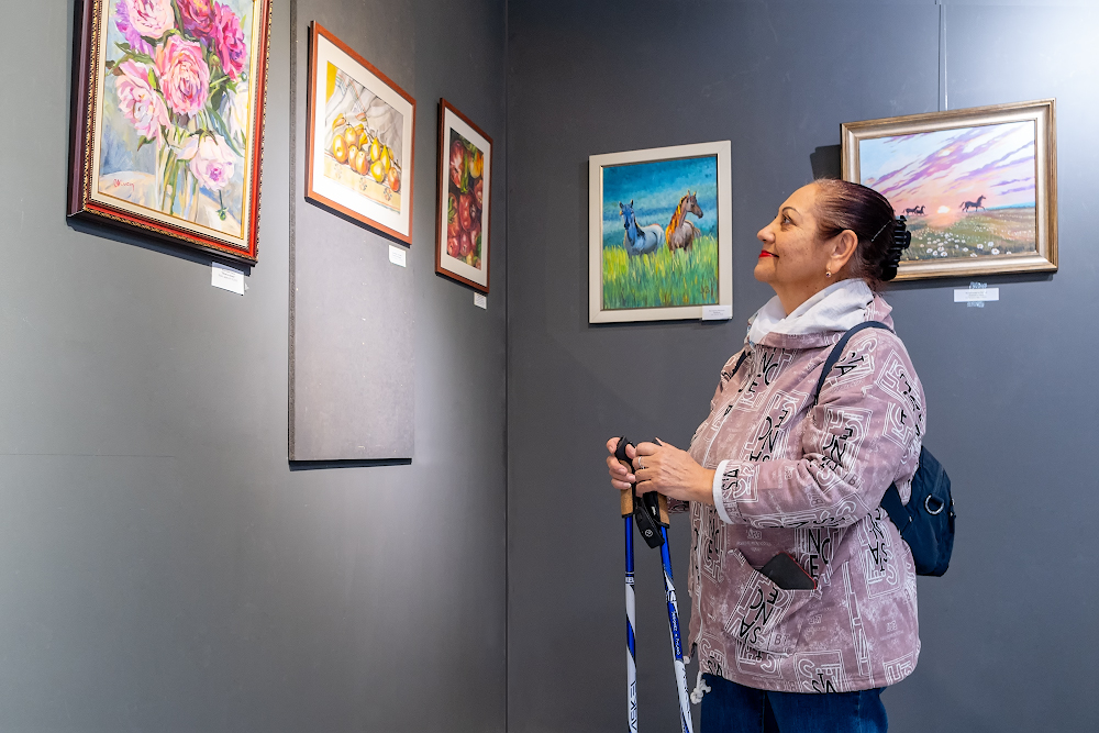На вернисаже в основном были представлены пейзажи и натюрморты. И это не удивительно, ведь авторы картин не являются профессиональными художниками, а взяли в руки кисти и краски всего пару лет назад, придя в кружок живописи в алматинском центре активного долголетия.