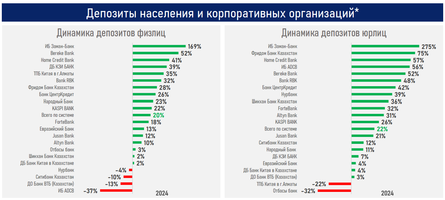 Среди позитивных тенденций в пассивах аналитики отметили рост доли "длинных денег" с 7,5% до 9,1% (от всех пассивов): сберегательные вклады выросли на 1,3 трлн тенге, облигации — на 385 млрд тенге, что будет благотворно влиять на возможности выдавать долгосрочные кредиты субъектам экономики в текущем году.