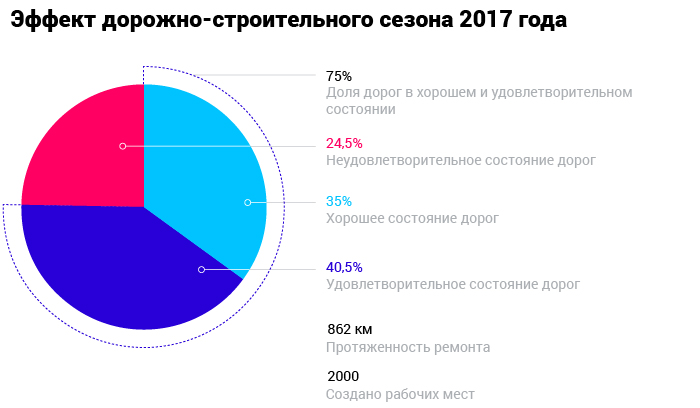 "И уже сегодня, проведя анализ его итогов, мы можем утверждать, что все поставленные перед дорожной отраслью области задачи выполнены в полном объеме. Это позволит области поддержать многолетнюю положительную динамику развития дорожной сети и достичь показателя доли дорог в хорошем и удовлетворительном состоянии 75,5%".