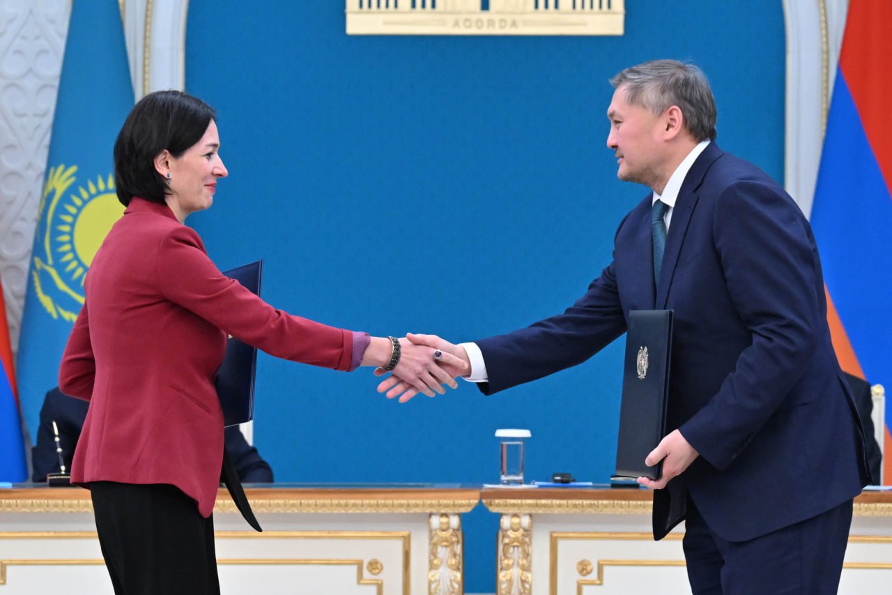 Казахстан и Армения значительно расширили правовую основу своего сотрудничества, обменявшись пакетом из 15 документов на межправительственном и межведомственном уровнях. Подписание состоялось в присутствии президента Республики Казахстан и премьер-министра Республики Армения, что подчеркивает высокий уровень политического доверия между двумя странами.