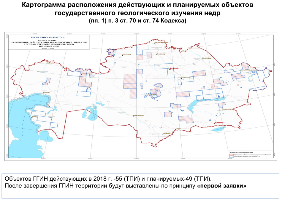 "Действующие объекты в 2019 году завершаются, но у нас до 2023 года предусмотрены работы. Они будут высвобождаться для потенциального недропользования", – оповестил собравшихся глава Комитета геологии и недропользования Акбатыр Надырбаев. При этом он отметил, что средства из госбюджета на громадные планы по ГГИН еще не утверждены.