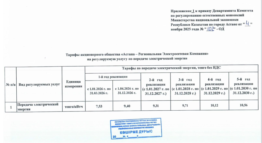 - с 1 января по 31 марта 2026 года — 7,53 тенге/кВт*ч (действовал в рамках моратория);