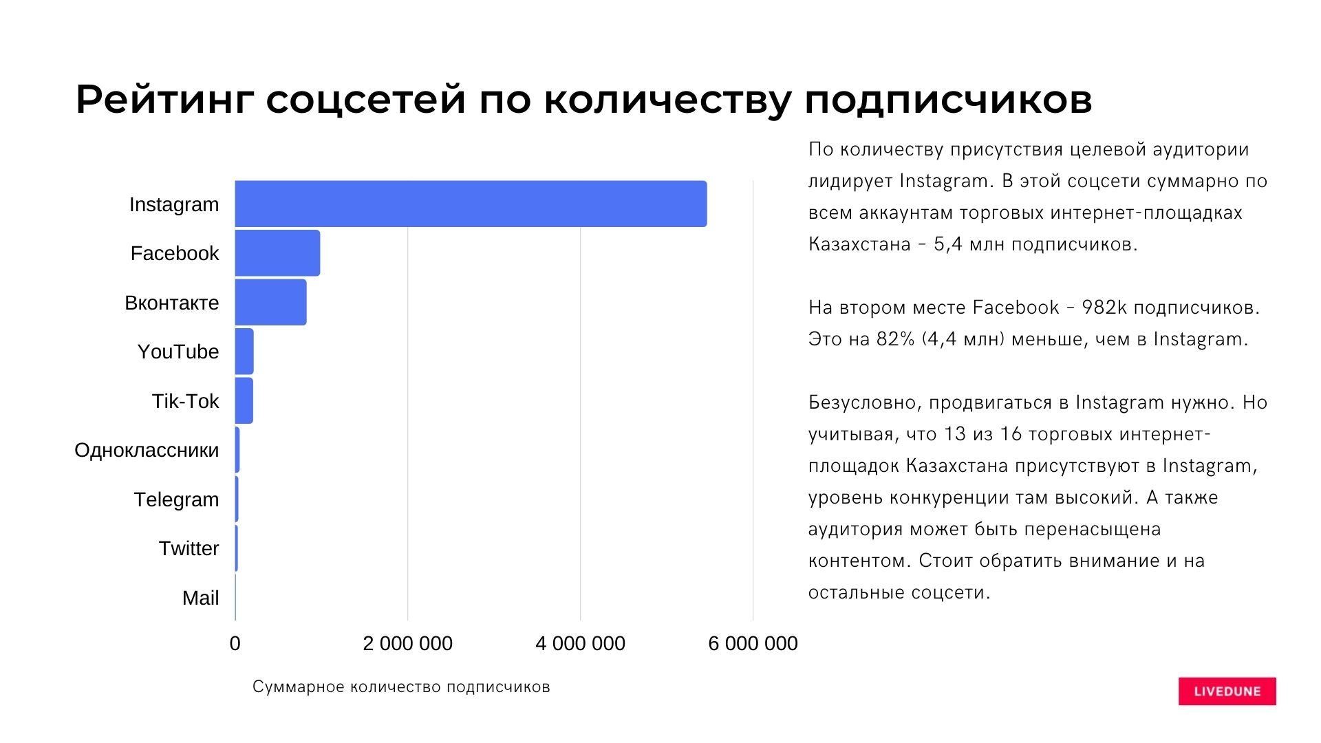 Больше аккаунтов, не значит больше подписчиков. Лидеры в основном используют 4 соцсети: Instagram, Facebook, YouTube и Вконтакте.