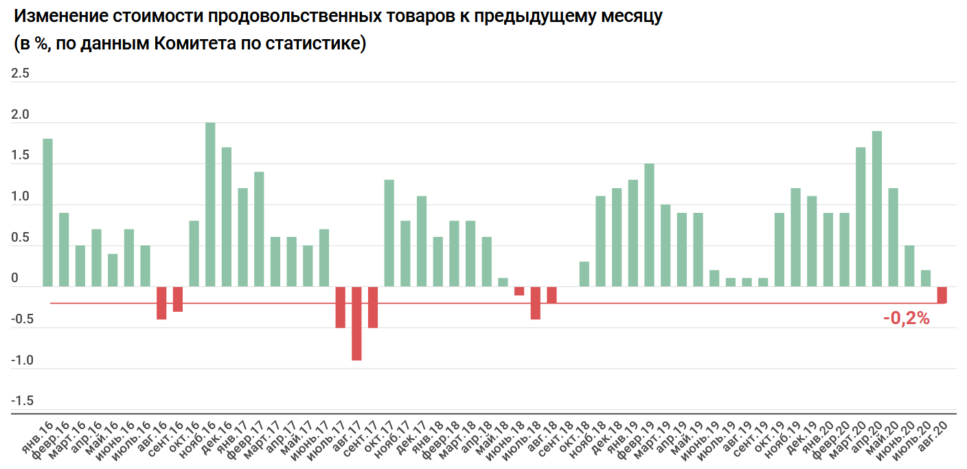 - Услуги общественного питания подорожали на 0,6%. Таким образом, прогнозы, что после снятия карантина цены взлетят из-за недополученной в течение лета прибыли, не сработали. По крайней мере пока.